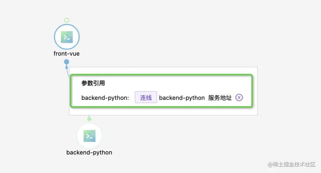 因此在连线时为需要获取地址的服务新增环境变量并绑定即可。