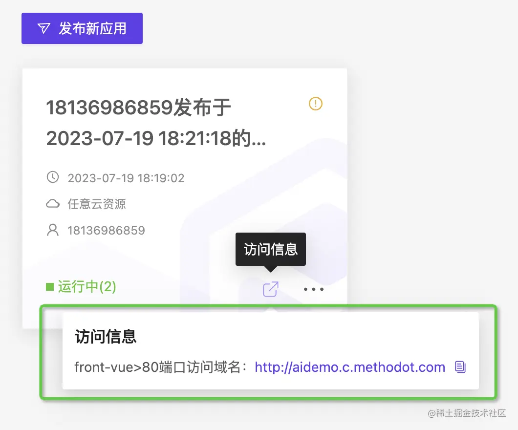 应用在发布过程中,或者应用卡片的【运维监控】入口查看相关信息。
