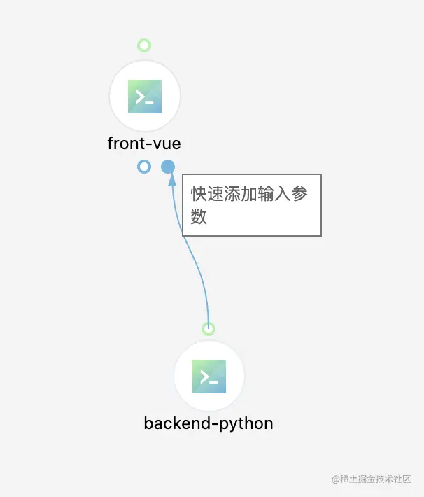 组件上端的端点代表组件发起后的地址输出,可以通过连线将这个数值赋给其他组件的环境变量。
