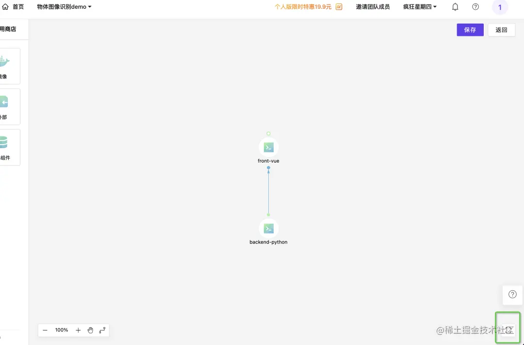 根据上述步骤,添加所有微服务组件,最后点击保存架构图。