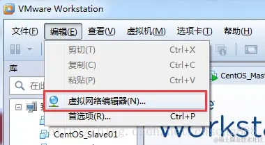 一、在菜单栏选择编辑→ 虚拟网络编辑器,打开虚拟网络编辑器对话框,选择 Net 网络连接方式,随意设置子网 IP,点击 NAT 设置页面,查看子网掩码和网关,后面修改静态 IP 会用到。