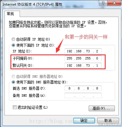 注:上面的 “使用本地 DHCP 服务……” 这一项是没有钩选的