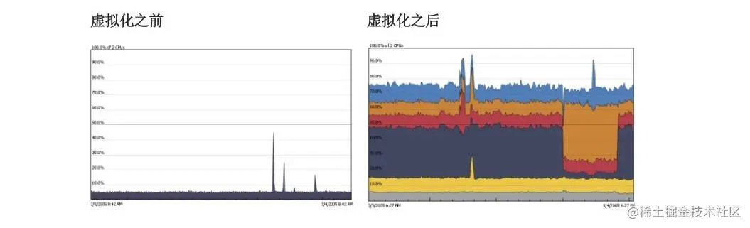 在1960年代,IBM就用虚拟化来描述一套能够抽象硬件资源的实验性系统。当时没有统一标准,需要适配各种代码、平台,虚拟化技术用来适配不同平台的物理机器;随着技术发展,虚拟化可以更好的应用在计算机资源管理领域。