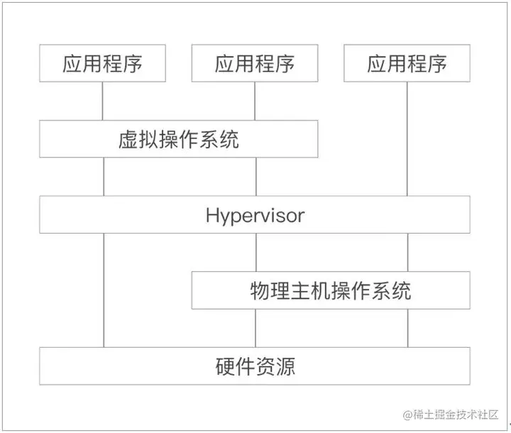 常见的Hypervisor,VMware Workstation、Xen,JVM、HHVM等。