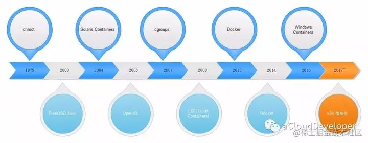 容器概念始于1979年提出的UNIX chroot,它是一个UNIX操作系统的系统调用,将一个进程及其子进程的根目录改变到文件系统中的一个新位置,让这些进程只能访问到这个新的位置,从而达到了进程隔离的目的。
