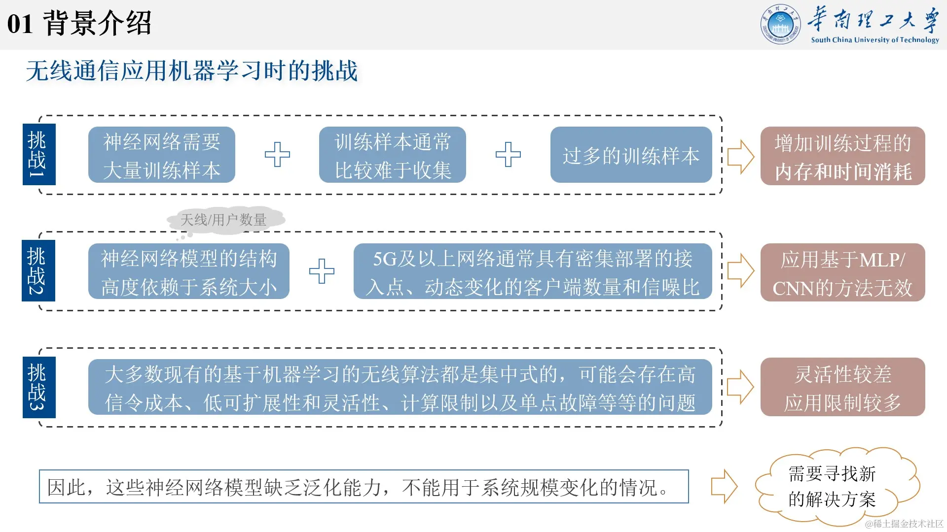 最后,大多数现有的基于机器学习的无线算法都是集中式的,可能存在高信令成本、低可扩展性和灵活性、计算限制以及单点故障等问题。
