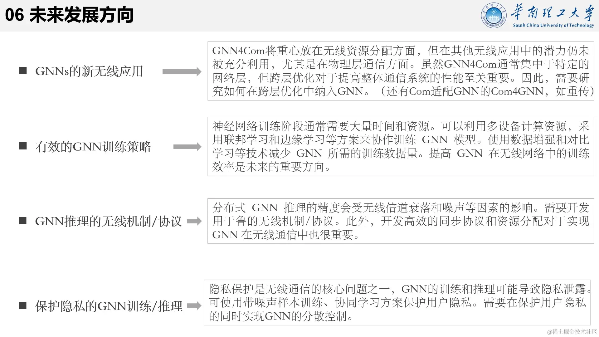 由于GNN本身的发展没几年,各领域基于GNN的研究还比较新颖,因此GNN本身的未来发展以及无线通信场景下的发展方向也有很多,这里简单列举几个。