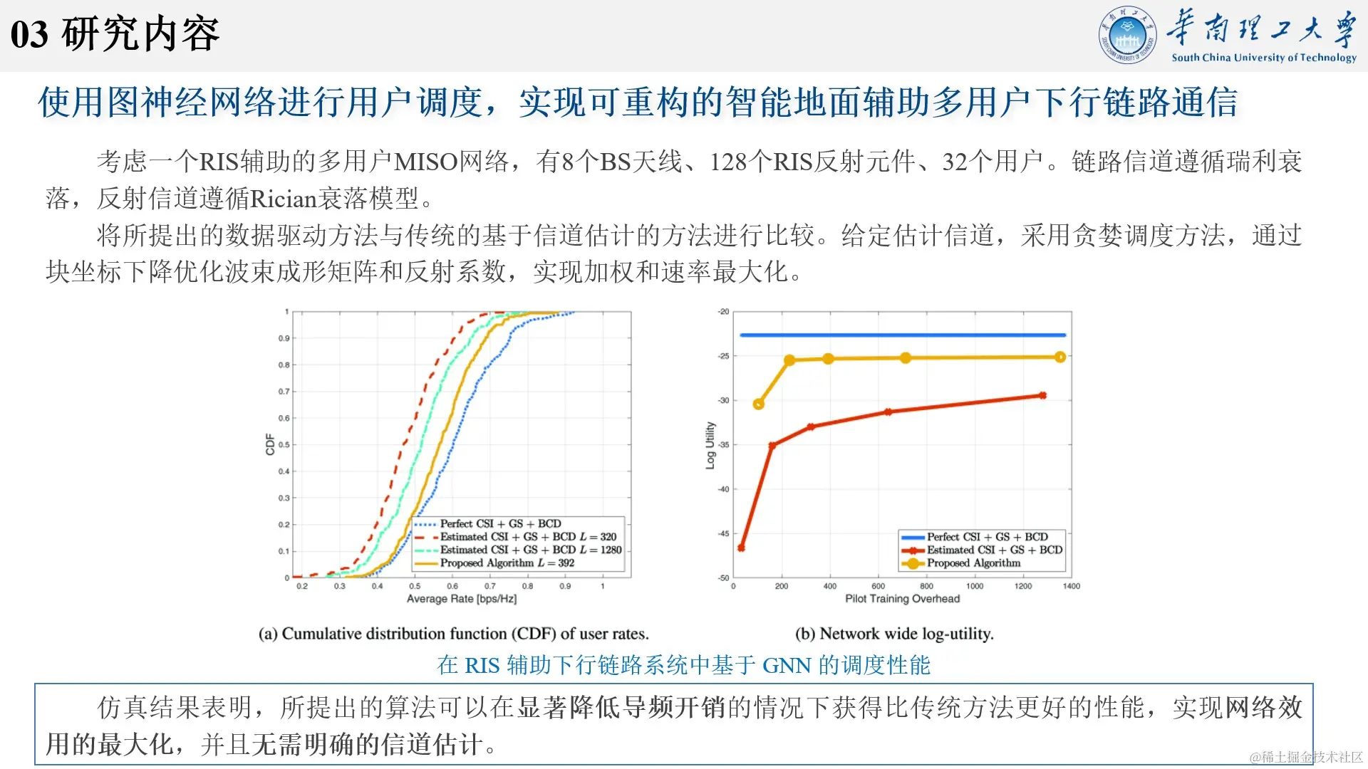 在实验部分。考虑了一个RIS辅助的多用户MISO网络,有8个BS天线、128个RIS反射元件以及32个用户。链路信道遵循瑞利衰落,反射信道遵循Rician衰落。