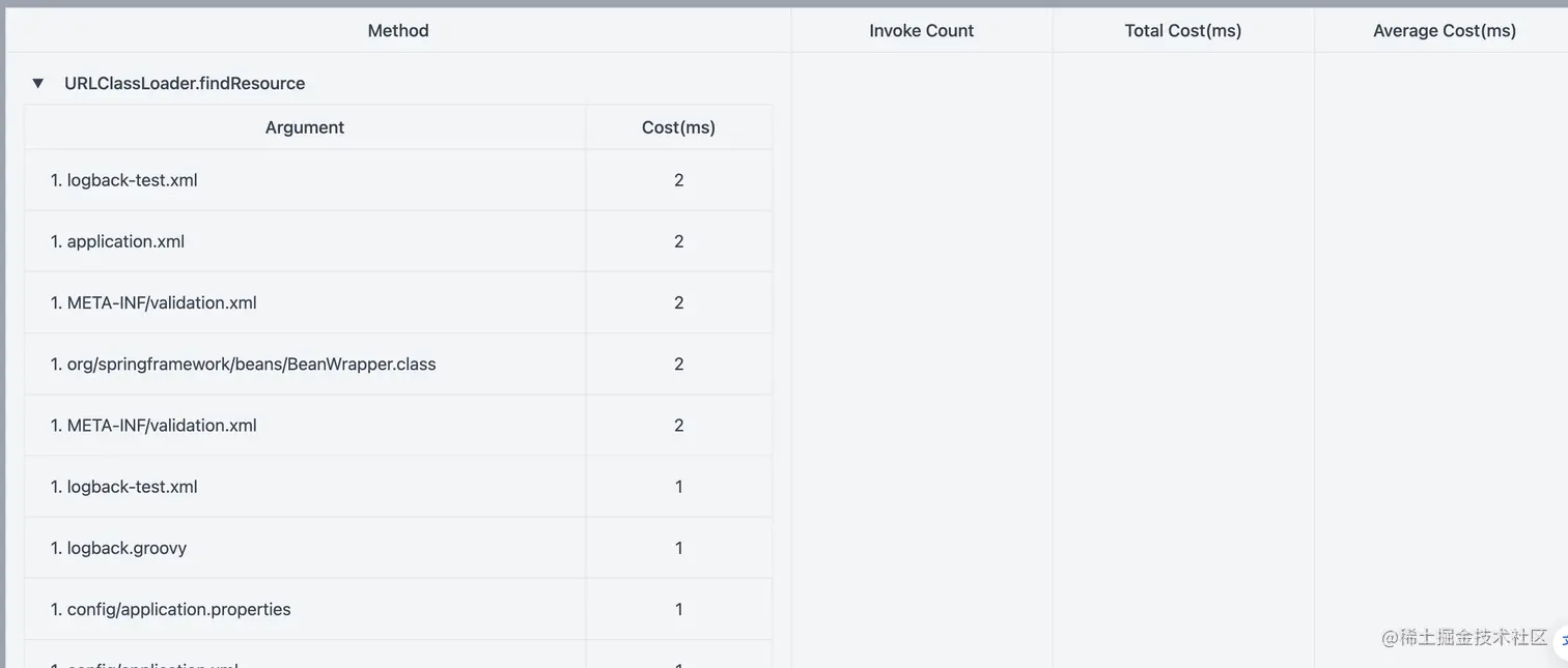 - Spring Bean初始化数据。这里采集了每个Spring Bean的初始化时间及其细节内容