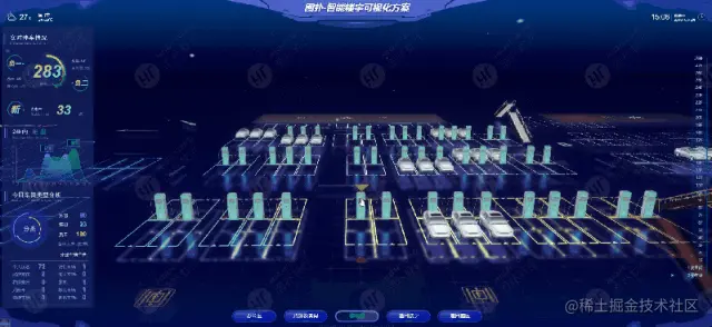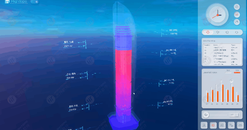 建筑信息模型(Building Information Modeling,BIM)是一种建筑行业管理信息系统中的三维模型数据,工程建设专业人员可以通过 BIM 获取相关信息数据,更高效地规划、设计、构建和管理建筑及基础设施。智慧园区将 BIM 楼宇数据叠加到地图场景中,实现 BIM + GIS 的结合展示。通过对 BIM 模型不同楼层及楼层内的资产建设进行分离,动态还原演示了楼宇的建造过程。