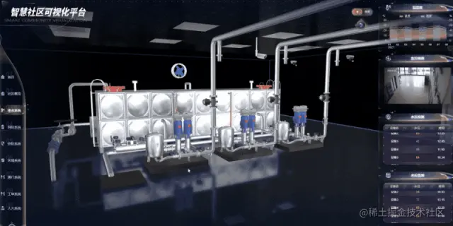 给排水管理主要用于监测和管理楼宇的给水、排水和污水处理系统,HT通过将水质监测、水量监测、漏水监测、水压监测、污水处理监控等结合三维场景进行可视化展示,实时了解给排水各方面状态数据并对设备运行状态、异常等进行监控,帮助管理人员达到安全饮水、节约资源、建筑安全等目的。