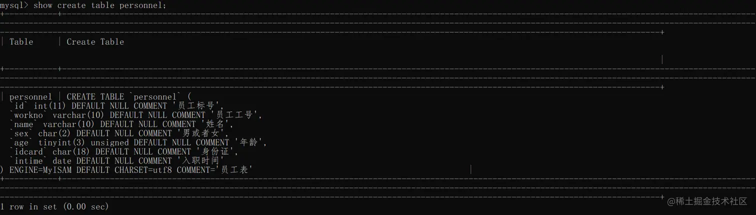 语法:show create table 表名