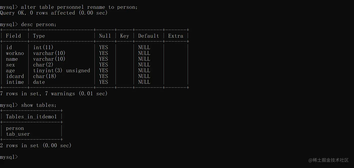 修改表名语法: alter table 旧表名 rename to 新表名;