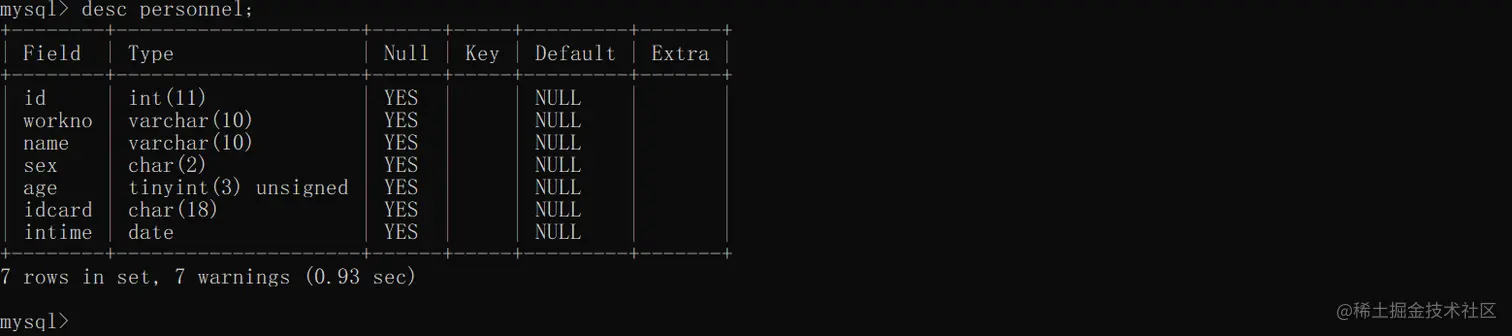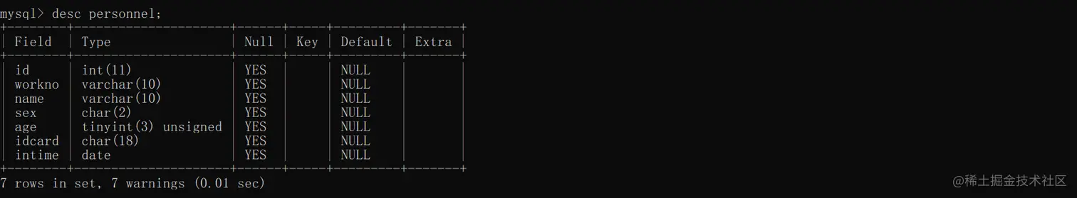 语法:desc 表名