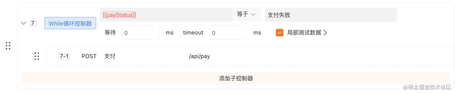 支付失败时重新调用支付接口选择其他支付方式:使用While循环控制器,如下图: