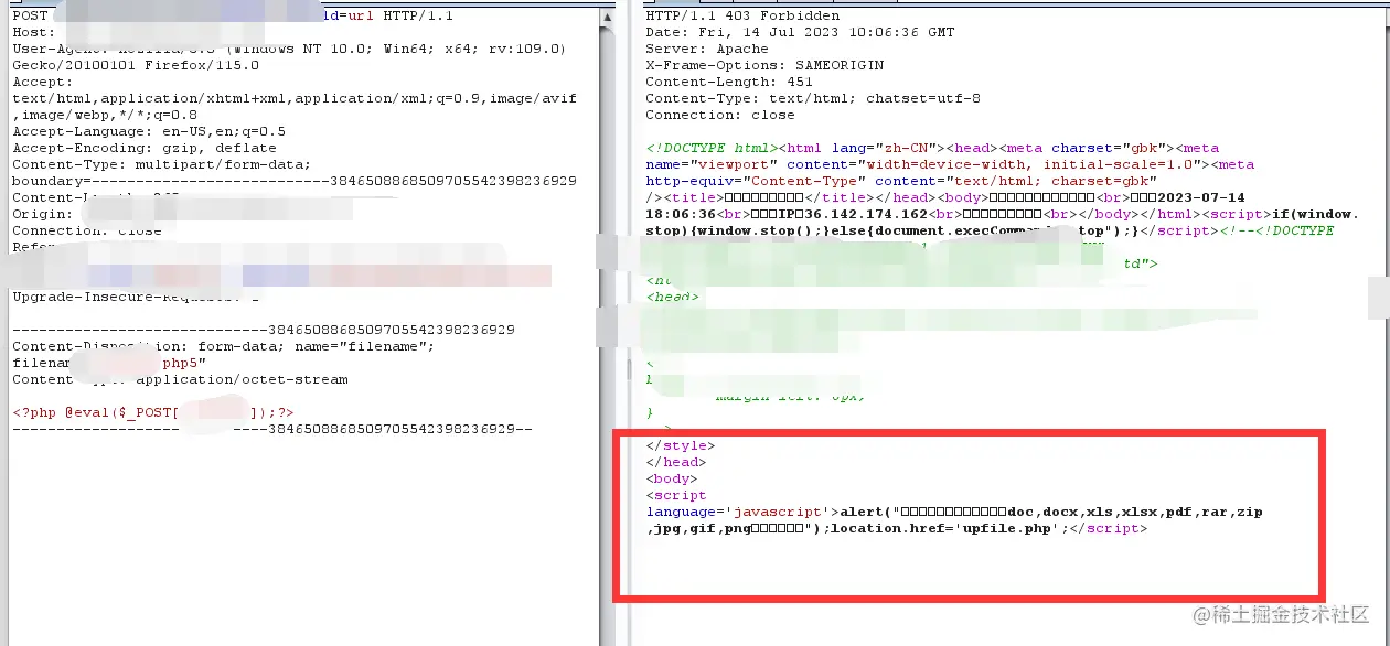 修改MIME信息且php5分段绕过但还是提示不能上传,传了图片马但是不能解析