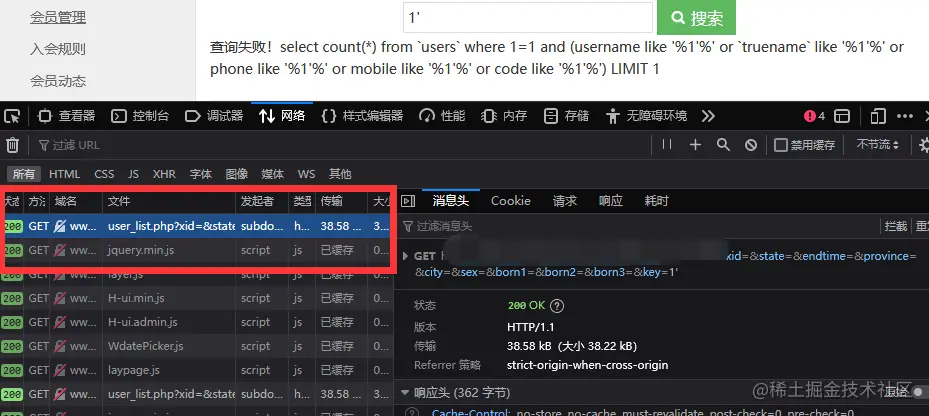 F12调出网络又发现也是GET请求方式,复制请求URL直接查看回显
