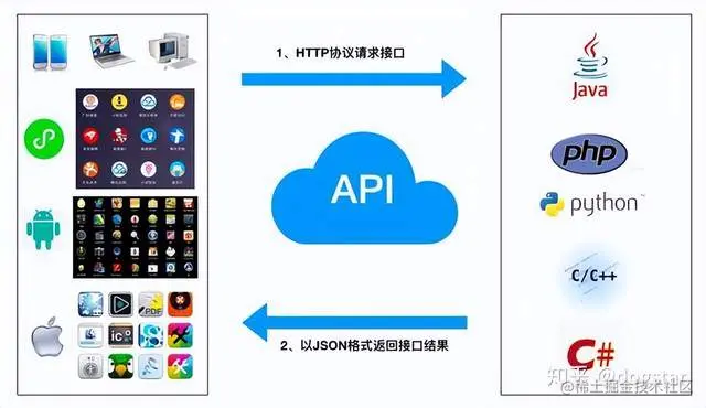 更为常见的是,API接口很可能是远程的服务端API,其背后采用Java、PHP、C#、Pyhon、C/C++、Ruby、Scala等一种或多种后端语言开发搭建,提供了数据存储、通讯、各类服务等功能。一般是使用HTTP协议进行通讯,使用JSON格式序列化返回接口结果和数据。