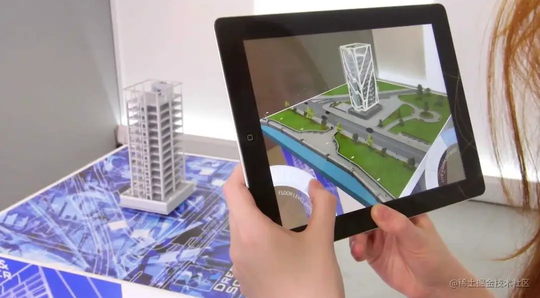 与全息图一样越来越广泛应用的客户端技术还有上世纪五六十年代发明的增强现实技术,如下图: