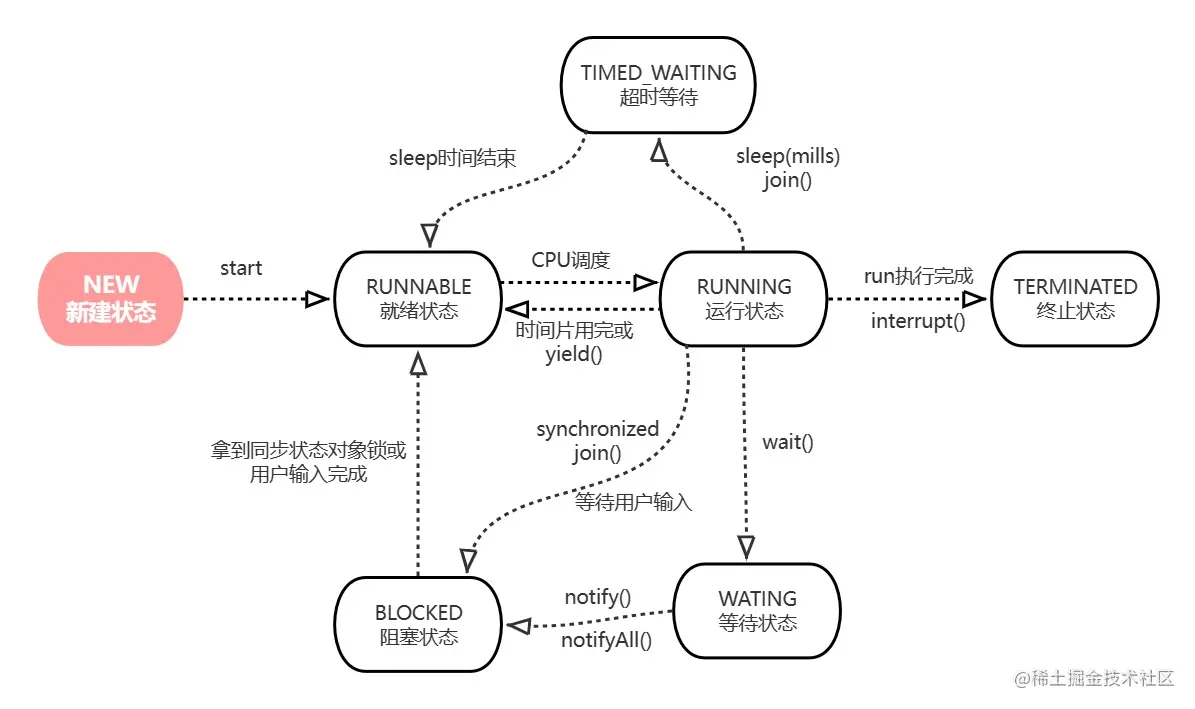从Thread.State内部类源码也可以得出线程主要有以下几种状态: