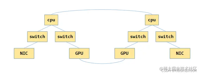 当p2p或者gdr不支持的时候,会通过CPU进行中转,通过getLocalCpu找到最近的CPU c。