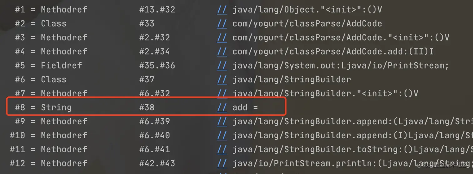 12: 代表ldc指令,其中08指向常量池中索引位置为#8的地址