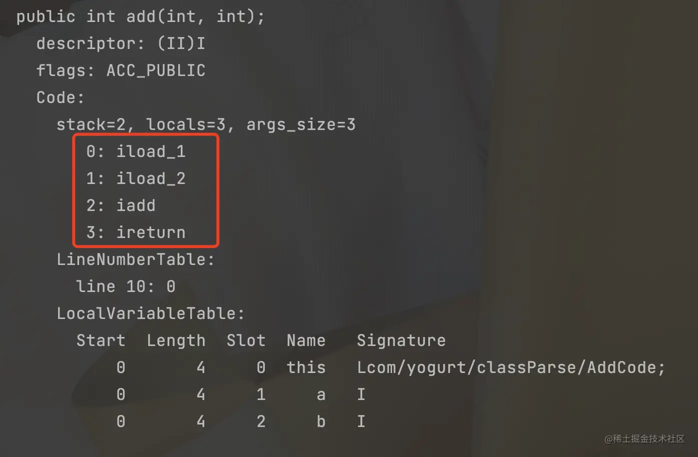 当前操作数栈的深度为3,可以查看我们的反编译内容: