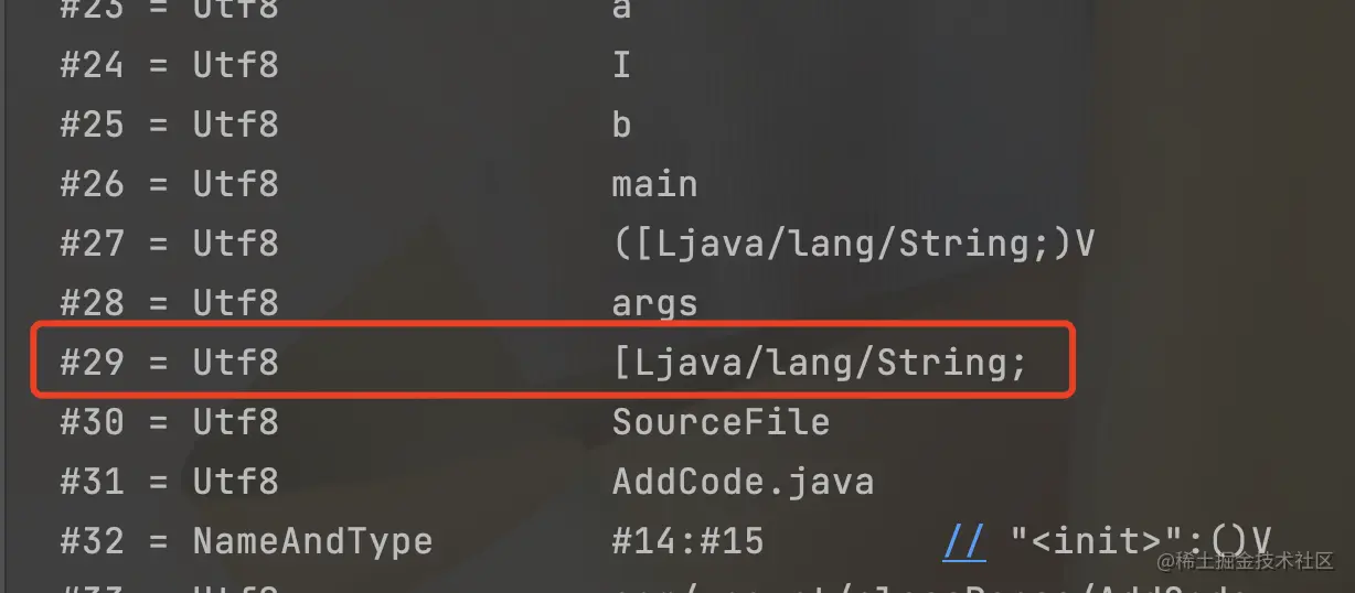 示指向常量池中#29的位置,如图: