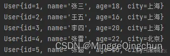 userList.add(new User(2,"王五",16,"上海"));