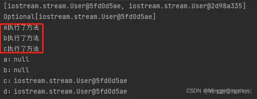 2、而当返回的Optional有值时,orElse会执行,而orElseGet不会执行