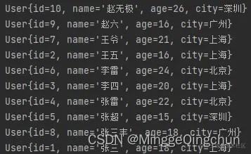 userList.add(new User(10,"赵无极",26,"深圳"));