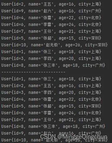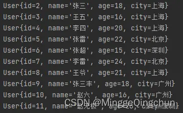 userList.add(new User(9,"赵六",16,"广州"));