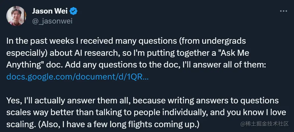 目前,这个问答帖还在更新,Jason Wei 也在陆续贡献自己的答案,大家可以有选择性地借鉴,或者提出自己的新问题。