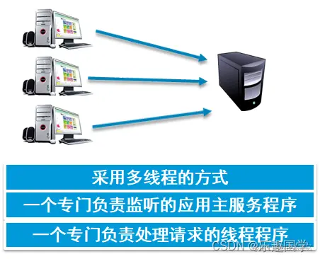 -->解决这个问题的办法是采用多线程的方式,可以在服务器端创建一个专门负责监听的应用主服务程序、一个专门负责响应的线程程序。这样可以利用多线程处理多个请求。