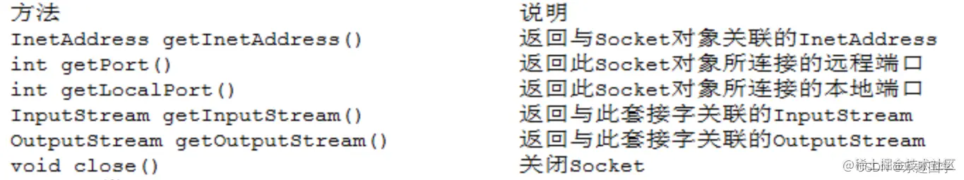 -->Socket类中列出的方法也适用于ServerSocket类。