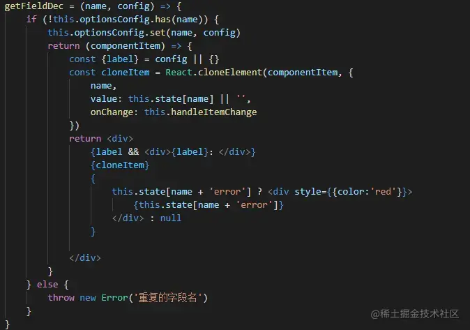 当调用getFieldDec时,相当于要创建一个用户表单行,在此将相关信息收集下来以等待校验,同时将错误的提示ui内置到每一行中