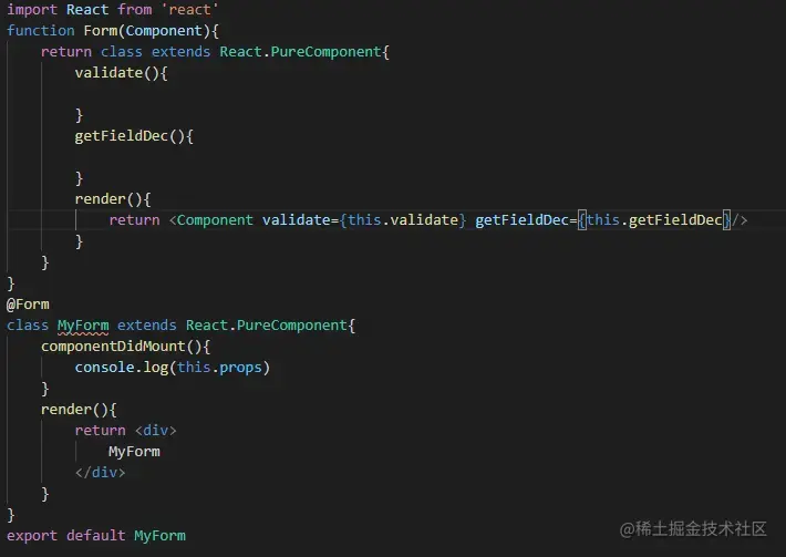 通过装饰器语法,我们能拿到待扩展的组件,并可替换类的定义。这让对其魔改成为了可能,其实替换类定义说白了就是在内部返回一个新的类,并且该类的render渲染的是待扩展的组件