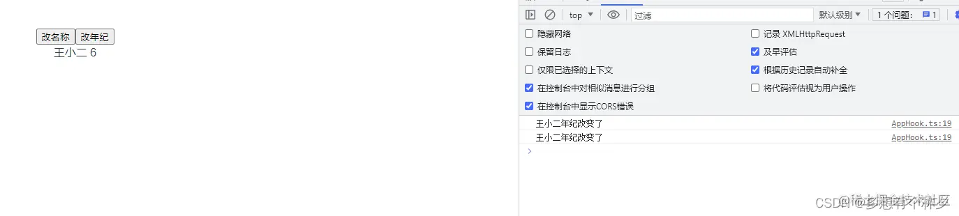 在子组件点击修改名称,发现父组件的值直接改变了,这样就少了传值的功夫。