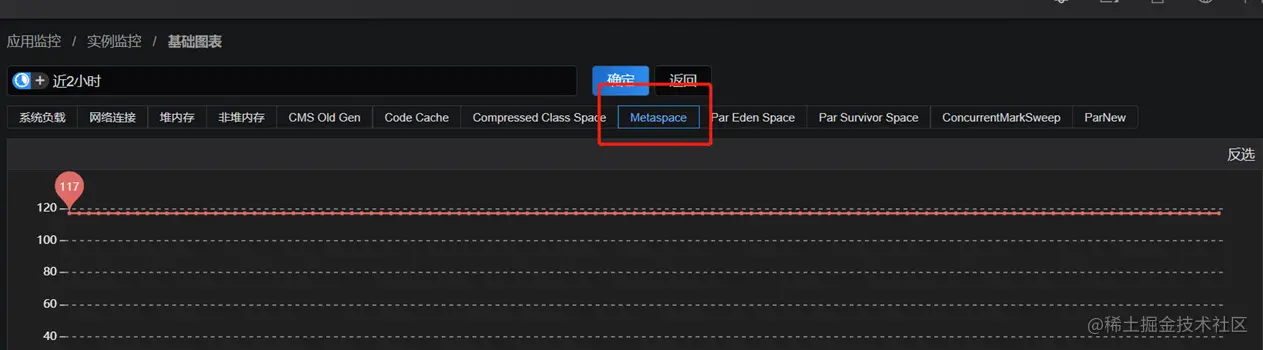 1、查看公司SGM监控平台(开源监控可以参考:【Prometheus+grafana监控】),元空间最大内存256M,FullGC发生前后为117M,排除Metaspace不足造成的原因