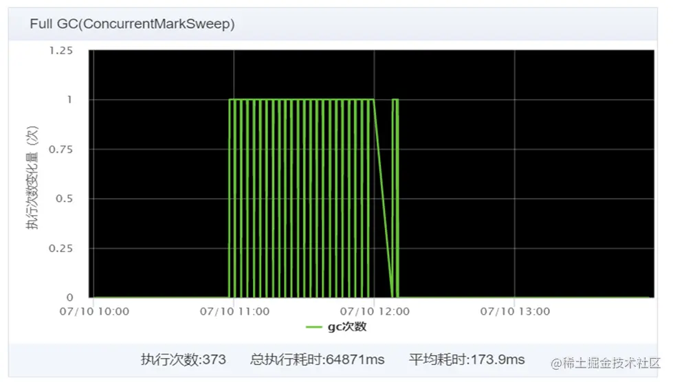 第一: 登录公司的UMP监控平台(开源监控可以参考:【Prometheus+grafana监控】)查看该机器的系统指标,发现确实在频繁FullGC从11点持续到了11点半