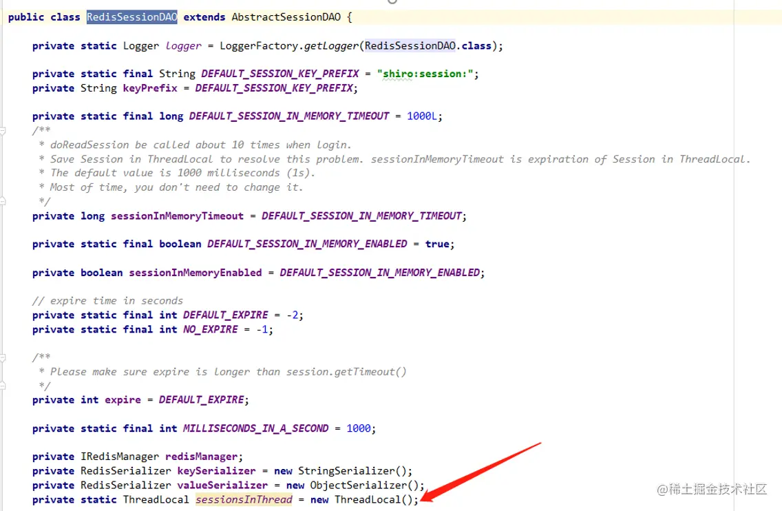 1、在RedisSessionDAO.java文件中定义了一个ThreadLocal变量作为线程隔离