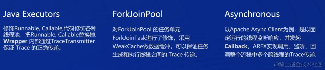 以上是 AREX TRACING 传递实现中比较普遍的基础场景。除此以外,我们的应用中还有大量使用多线程、异步等技术的场景,这种场景下调用链会丢失,给数据的串联带来很大的困难。
