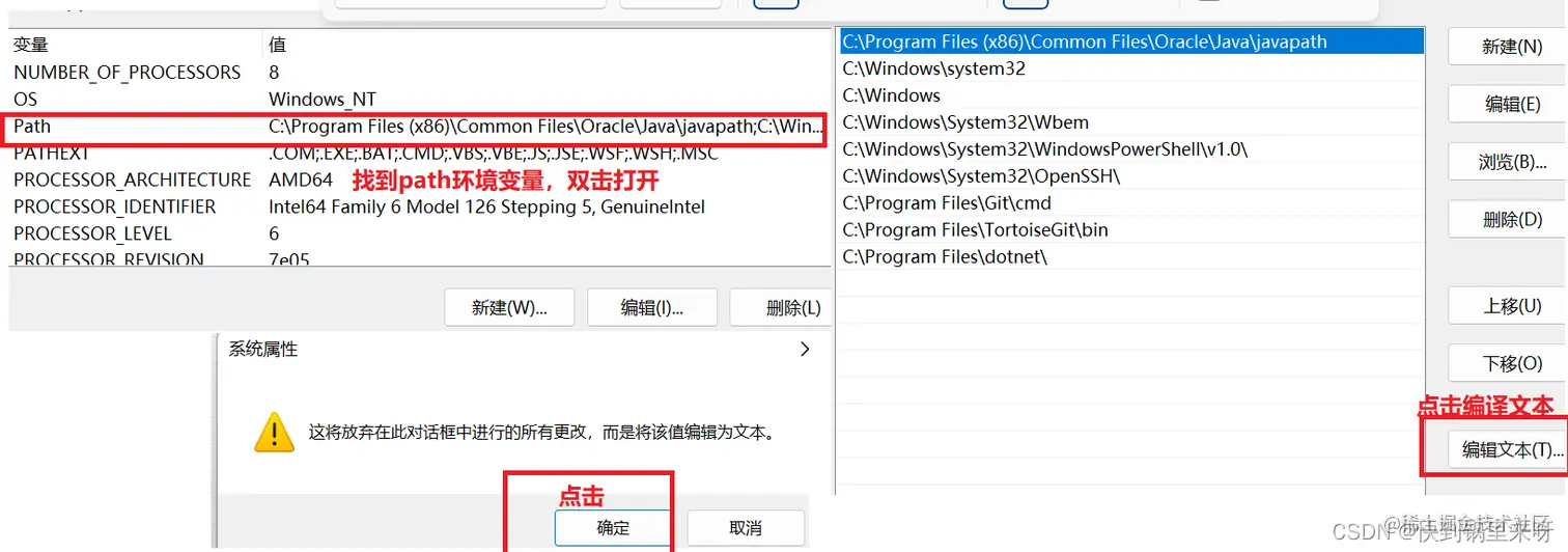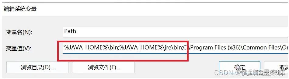 Path, 需要注意Path路径一般是存在的,只需要追加即可。这里使用%JAVA_HOME%的意思是直接引用上面配置的JAVA_HOME的值, 这样的好处是,如果Java安装目录发生变话,只需要修改JAVA_HOME的值,不用再修改Path变量的值。