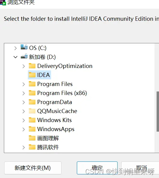 因为我想放在D盘,所以我在D盘创建了一个放IDEA的文件夹