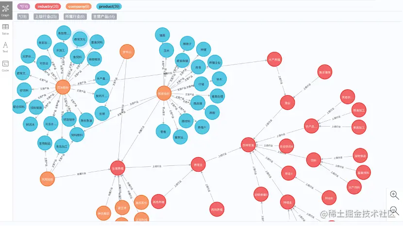# 金融领域:产业链知识图谱包括上市公司、行业和产品共3类实体,构建并形成了一个节点10w+,关系边16w的十万级别产业链图谱