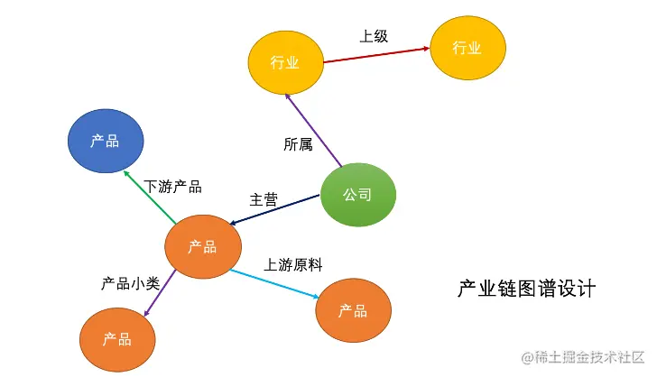 产业链知识图谱包括A股上市公司、行业和产品共3类实体,包括上市公司所属行业关系、行业上级关系、产品上游原材料关系、产品下游产品关系、公司主营产品、产品小类共6大类。