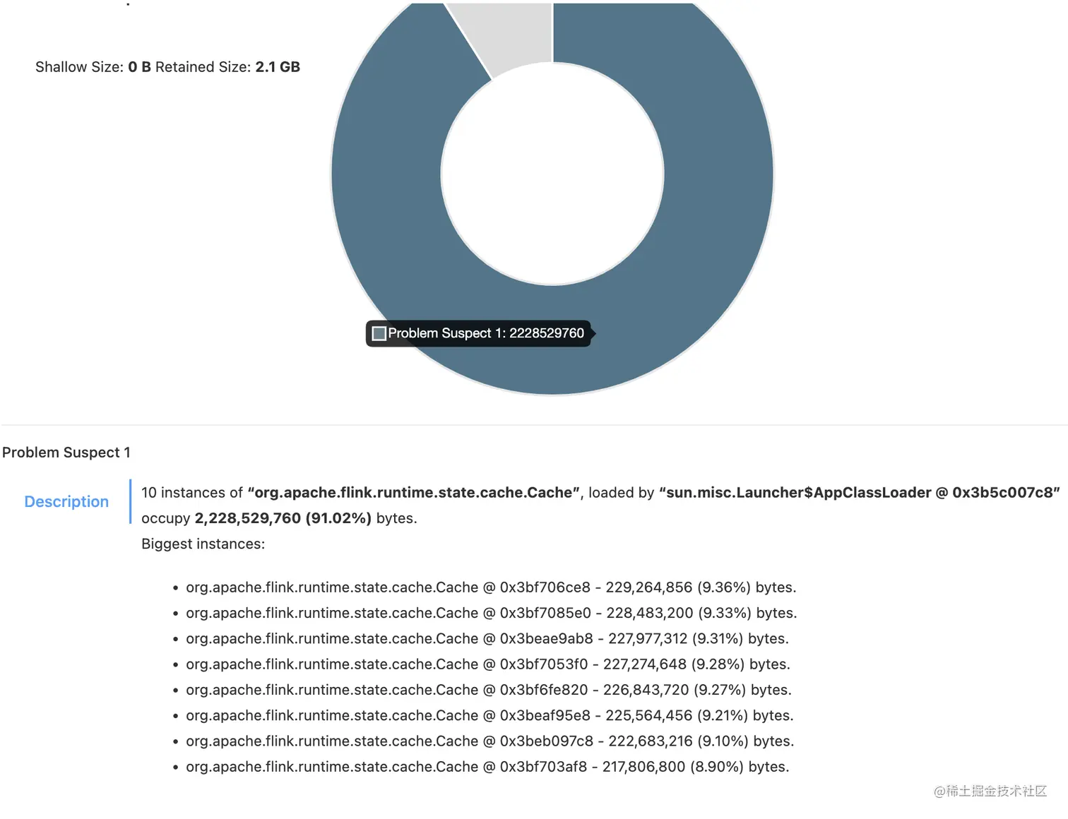 根据堆内存分析,大部分内存被state cache占用,每次回收时间长,