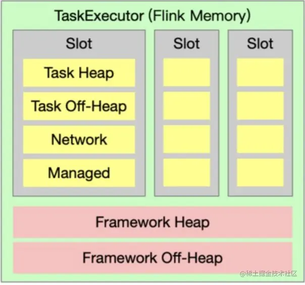 用户代码使用的堆内存、networkbuffer、Managed Memory这三部分是主要的内存。