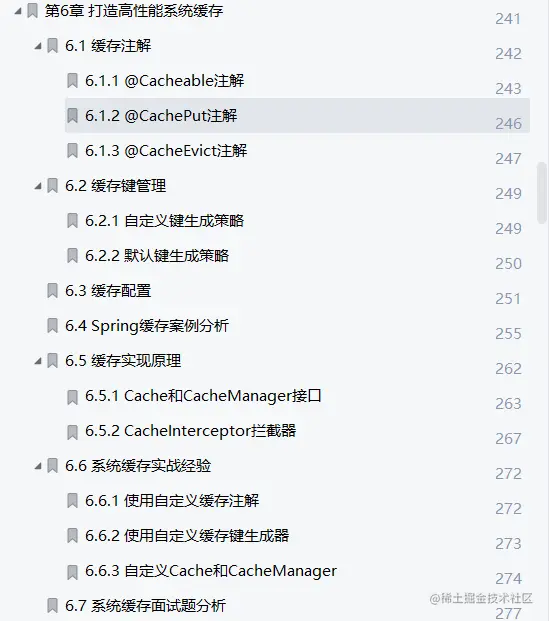 内置缓存。在这一部分,我们关注Spring Boot框架的一个高性能功能组件,即缓存。我们讨论Spring中内置缓存的使用方法以及它的底层实现原理,并结合Spring Security框架讨论缓存机制在用户认证流程中的作用。通过这一部分的学习,读者可以掌握Spring针对缓存的抽象思想、架构设计以及实现过程,同时理解高性能安全性的解决方案。