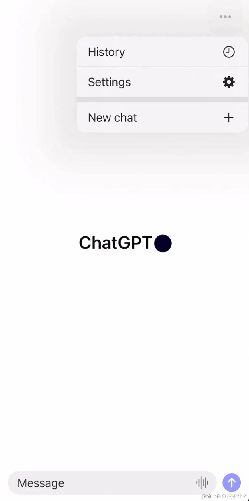 1. 在iPhone或者iPad登录ChatGPT之后,点击屏幕右上角的三个点的按钮,打开ChatGPT的菜单。